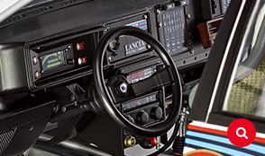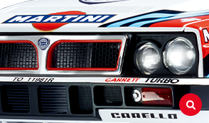 エンジンやエアロパーツをはじめシートやロールバー、ダッシュボード、ボディを彩るマルティーニ・レーシングのデカールなど細部にわたり実車に忠実に再現!