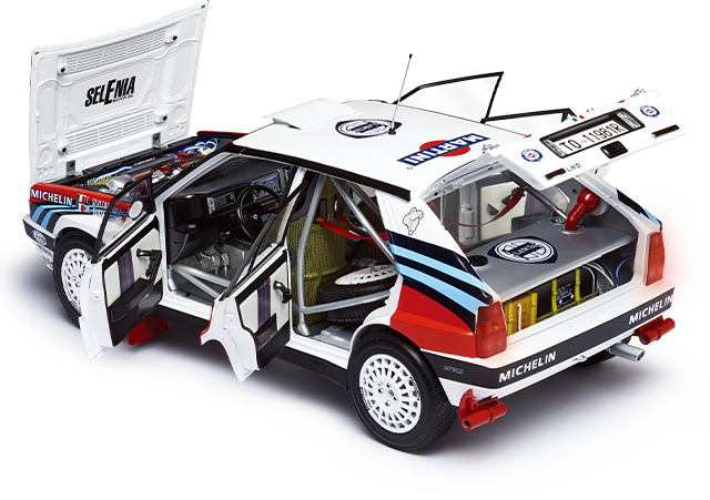 1978年をもってオフィシャルのストラトスが表舞台を去ってから9年、ランチアはまたしても「ラリーの女王」を生み出した。ランチア デルタだ! 1987年から1992年までWRCマニュファクチャラーズタイトルを6年連続で獲得するというストラトスを超える偉業を成し遂げたこのマシンは、年を追うごとに進化した。本シリーズではそのなかから、1991年にミキ・ビアシオンがステアリングを握った登録番号「TO 11981R」のHFインテグラーレ16Vを1/8スケールで完全再現。ディテールにこだわり、音と光のリアルなギミックを搭載したモデルを組み立てよう!