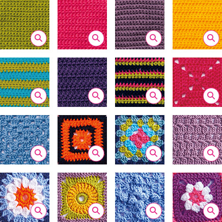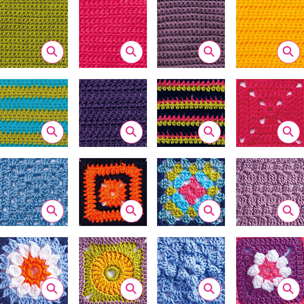 四角いモチーフを毎号1枚ずつ編み、最後につなぎ合わせたら、あなただけのオリジナルブランケットの完成です。
