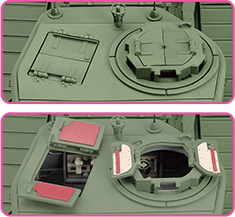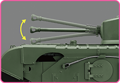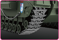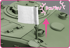 校章が描かれた特製リモコンでチャーチルMk.Ⅶを思いどおりに動かすことができ、さらにキャラクターボイスや楽曲、エンジンの走行音、砲撃音の再生も可能。リモコン本体もキット付属のパーツで組み立てていきます。