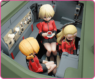 忠実に再現した衝立、ソファ、クッション、テーブル、ティーセットをセッティングすれば、ふたりの観戦シーンが目の前に。また音声ギミックのなかには大洗vsサンダース、大洗vs黒森峰でのダージリンの格言を搭載しているため、アニメのシーンが再現可能です。